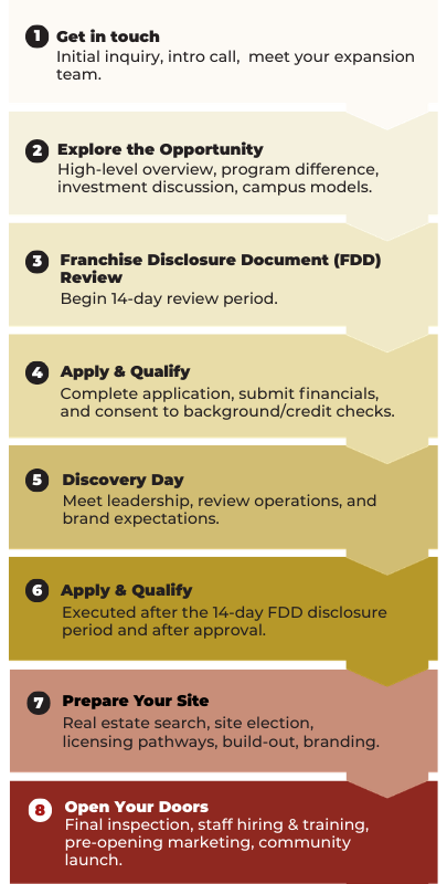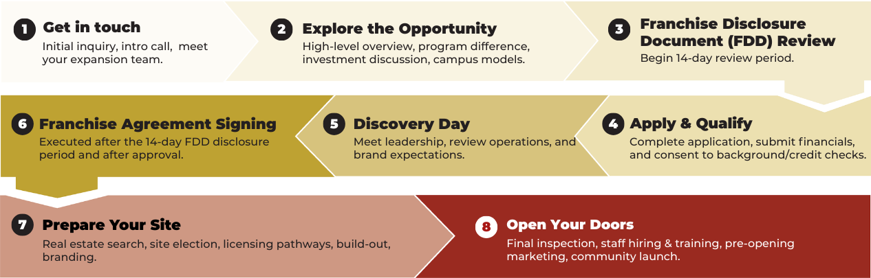 This website and all information located on this website do not represent an advertisement or offer to sell a franchise and are for information purposes only. Any offer of a franchise from us can only be made directly by us (or our representatives) outside of this website and with delivery of a franchise disclosure document as required by federal and some state laws.